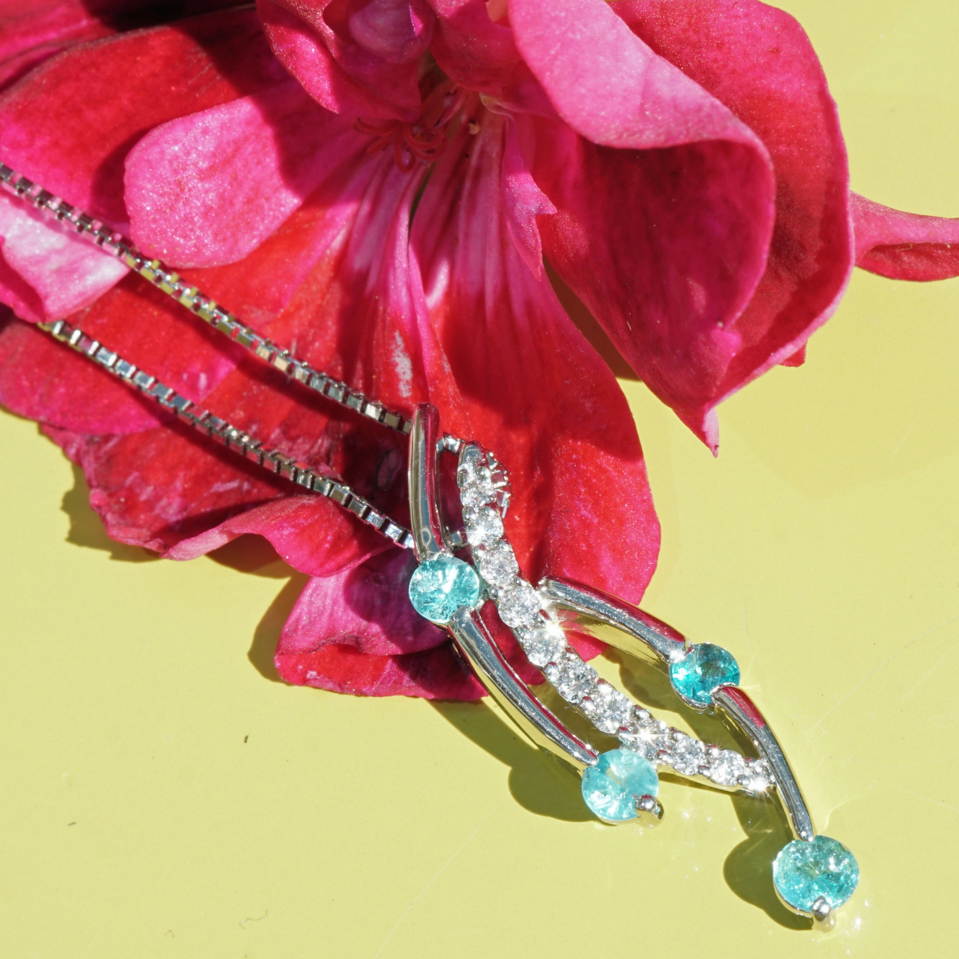Paraiba Tourmaline Brilliant Pendant with Chain 900 Platinum....lagune Colors...